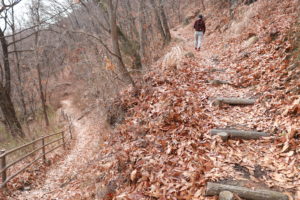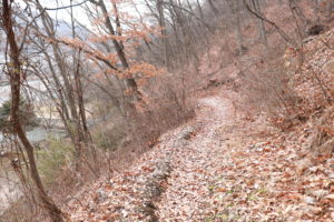 道幅は相変わらず狭く、両脇は崖。まさに、尾根伝いに山を歩いている感じです。