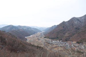 この辺りから山の反対側の集落も見えるくらい、山の上に来ていました。