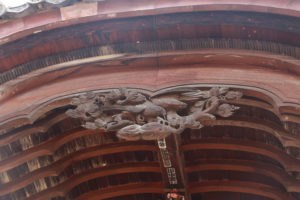 本殿は江戸時代末期に建築され、彫刻が多く使われています。これは江戸時代の建築の特徴なんだそうです。