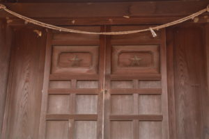 ↑境内にはほかに忠霊殿、奥には少し遊具がありました。忠霊殿の扉には星型の彫刻が。