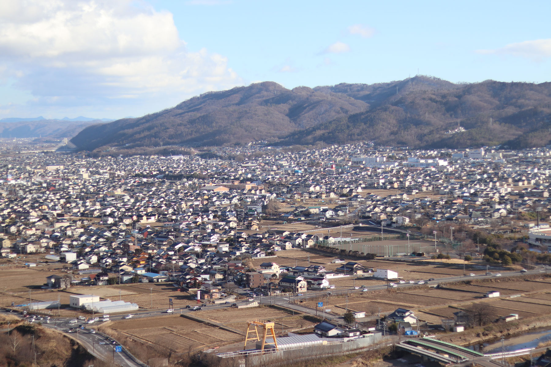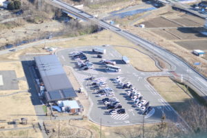 上田市側の景色を見ると、ほぼ真下に道の駅が見えます。