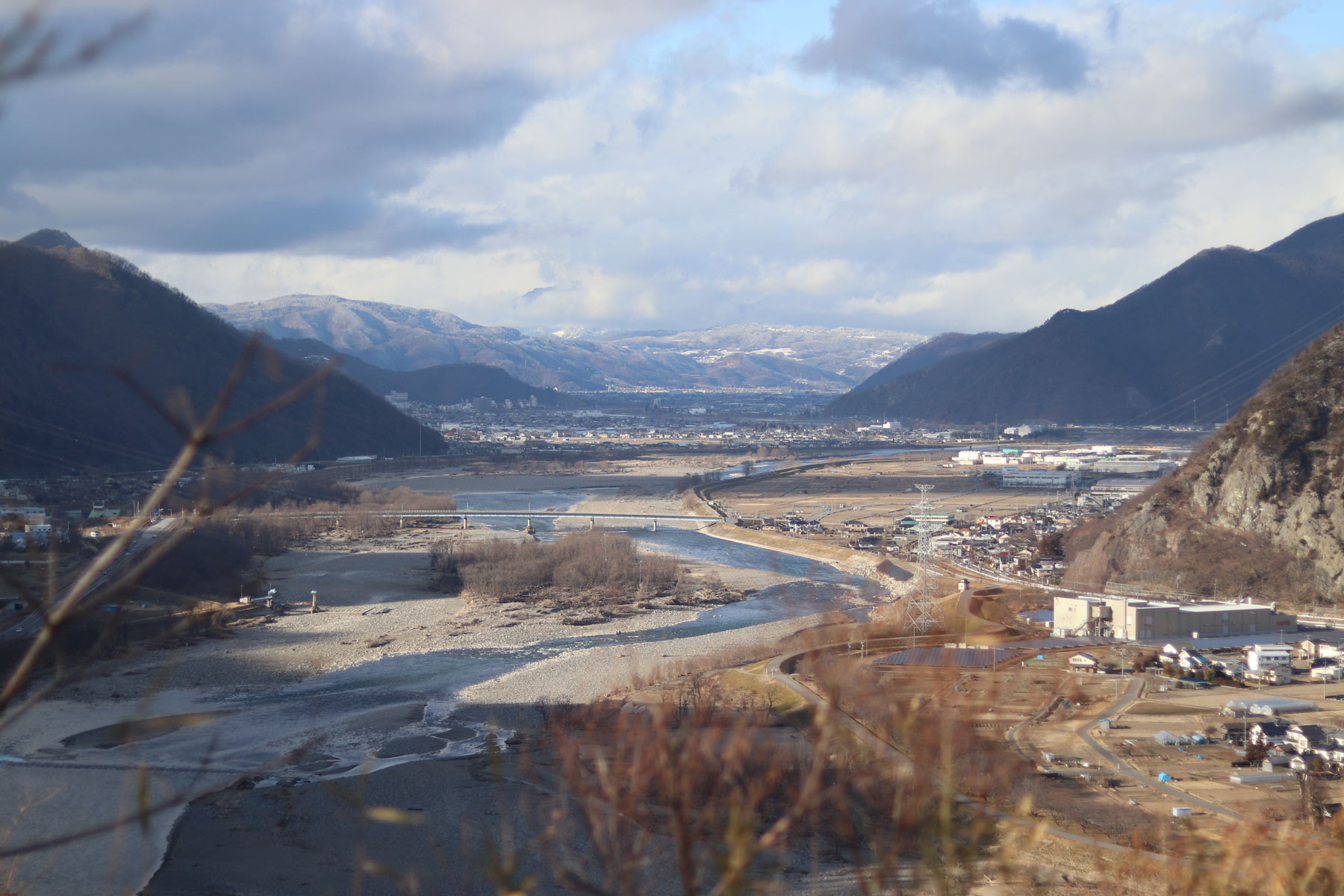 遮る木々が少ないためか、山頂からは上田、坂城のみならず長野市方面まで遠く見渡すことができます。