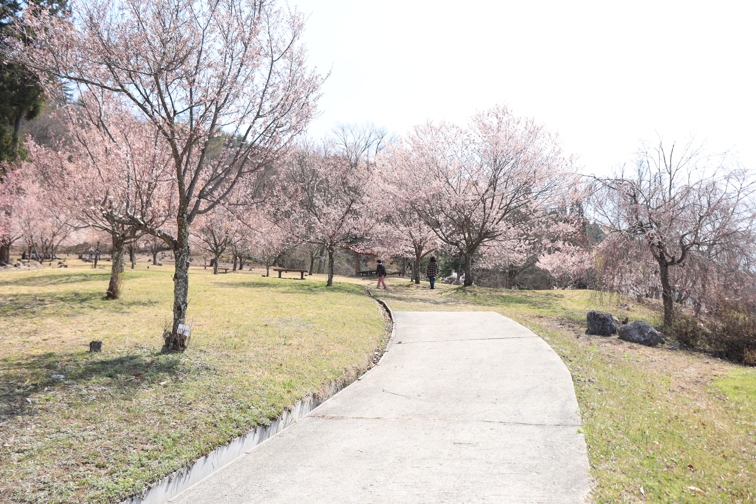 開けたところではレジャーシートを広げてピクニックをする家族連れも見られます。ぽかぽかとした陽気の中、山々と桜の景観を眺めながらゆっくりと過ごす休日の時間はとても贅沢ですね。