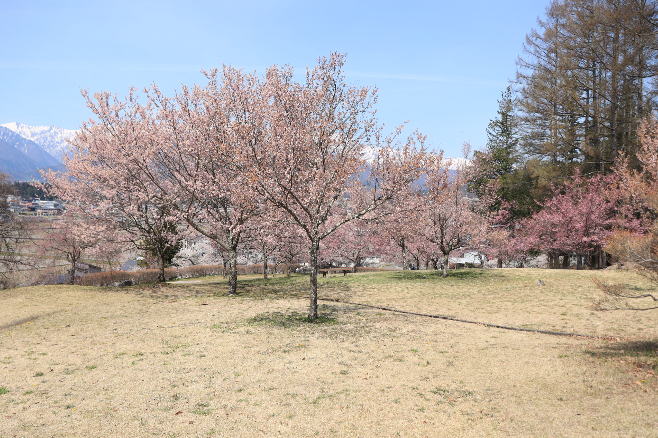 お花見とアルプス、どちらの景色も楽しめる大町のおススメスポットです!!近くに訪れた際にはぜひお立ち寄りください!