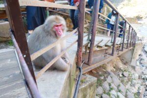 実際に行ってみると、人間が歩く歩道や柵の上に平然と腰掛けているサルがちらほら見受けられます。
