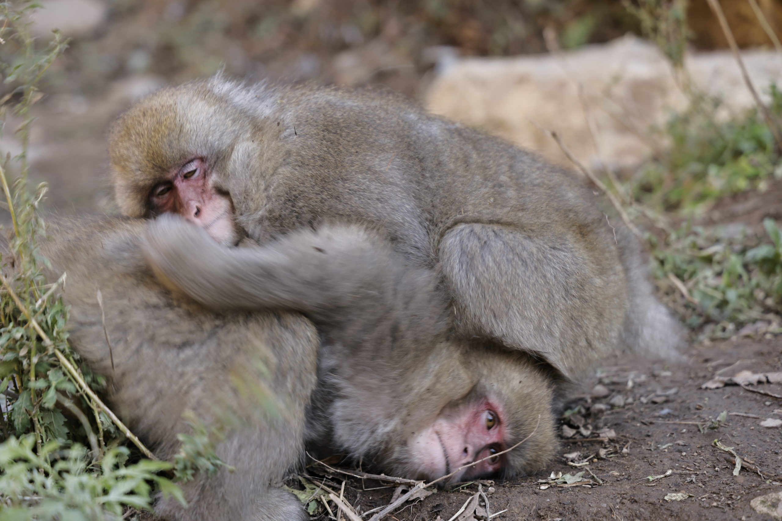観察していると、急にサル同士で喧嘩(じゃれ合い?)を始めて取っ組み合ったり追いかけっこをしたりと、自由奔放に駆け回ります。