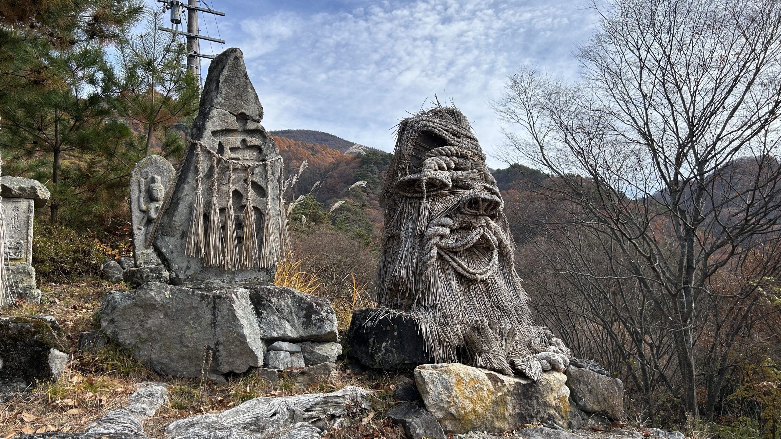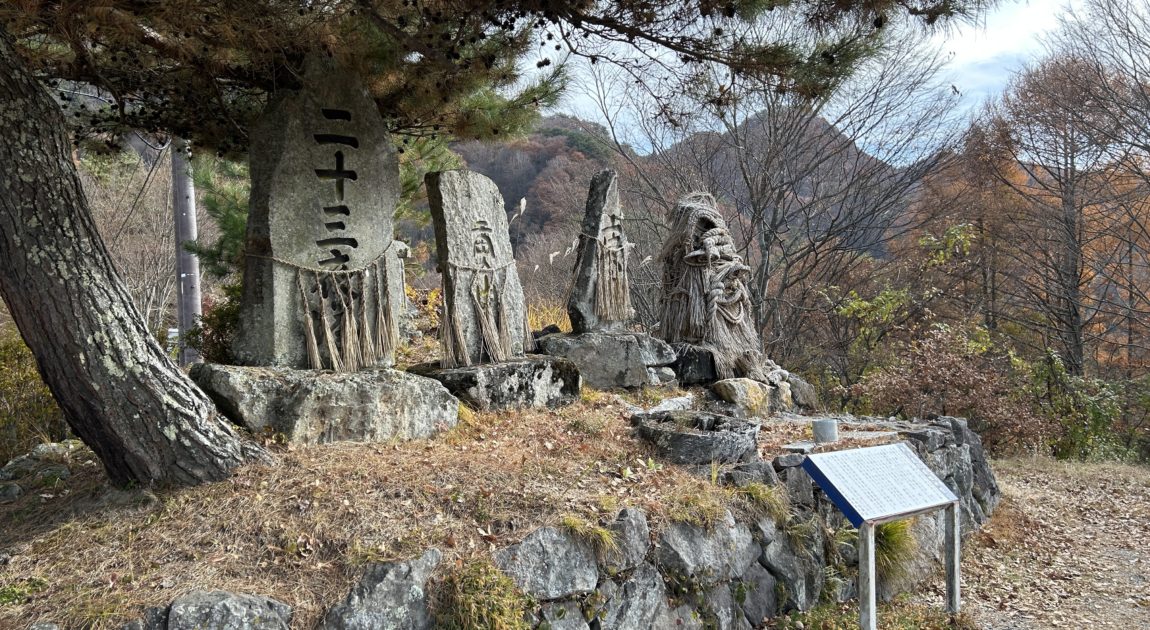芦ノ尻道祖神祭りの会場は、長野市大岡地区の芦ノ尻集落の入口付近に祀られている道祖神を中心とした広場です。 周囲には昔ながらの家並みや田畑が広がり、北アルプスを眺望できるスポットとしても人気があります。 山里らしい穏やかな風景の中で、毎年1月7日の七草の日には道祖神祭りが行われます。 県指定無形民俗文化財に指定されているこのお祭りでは、 当日に地域の人々が集まり、集落に古くから伝わる道祖神の石碑に松飾りや注連縄で神面を飾り付け、 道祖神に五穀豊穣や無病息災、家内安全を祈願します。 この日に一年間村を守ってきた古い神面をはずし、新しい神面が取りつけられます。 集落に古くから受け継がれてきた信仰と人々の結びつきを感じられる、温かみのある伝統行事の場所です。