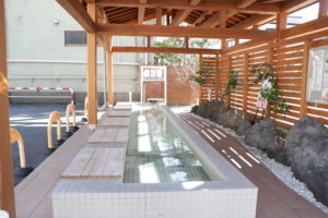 湯量豊富なことから、温泉街には公共の足湯があります。