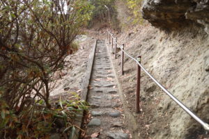石段を見上げるとけっこう急勾配で、実際に上がっていくとちょっと息が切れますが、段数は100段くらいでしょうか?(もっとある?汗)