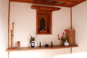 光の関係で見えませんが、奥に観音像と石碑?が安置されていました。