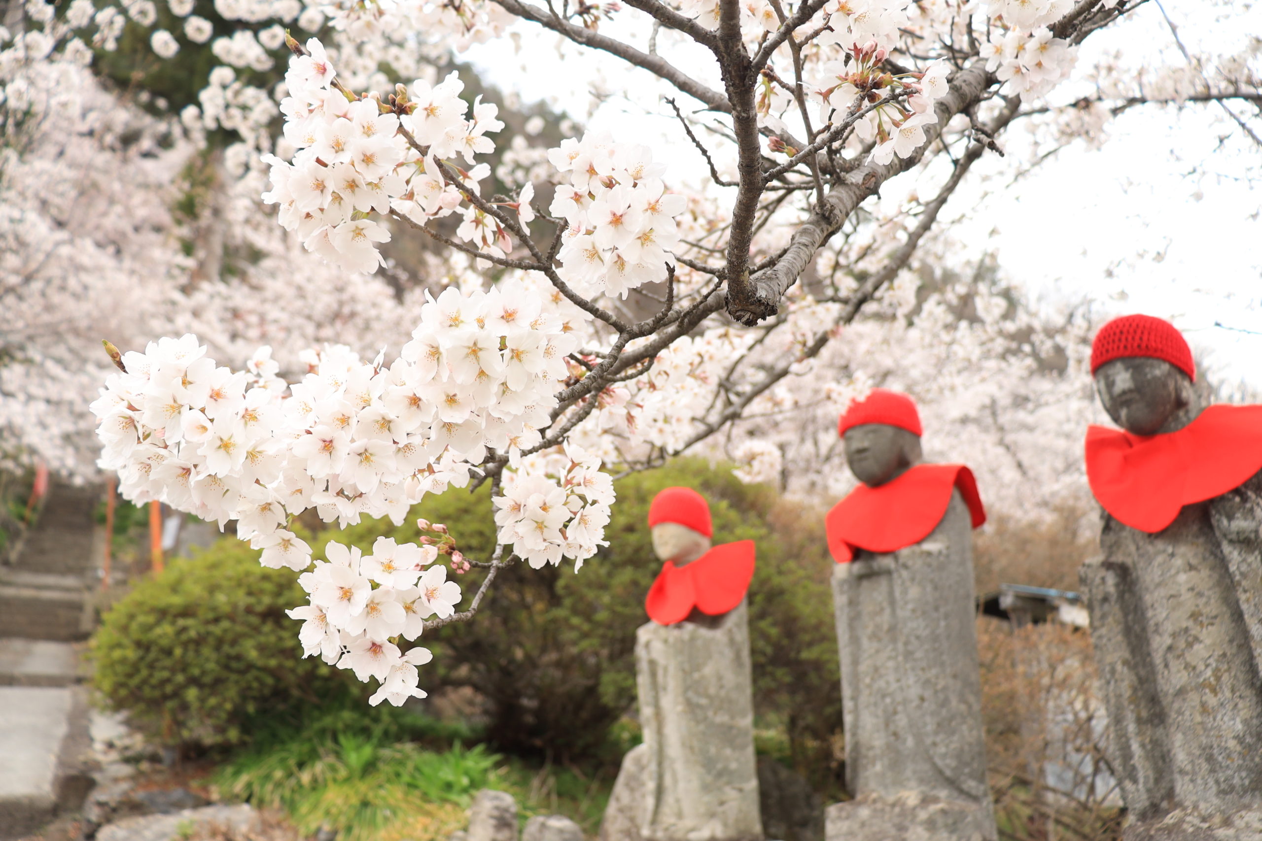 春にはこの桜をはじめとして境内の桜が花開き、朱塗りのお堂と相まって美しい景観を作り出します。