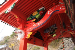 切り立った断崖を背にして建ち、朱塗りの観音堂が一際目を引きます。