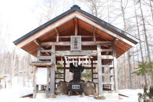 王滝を見下ろす展望所の途中には、ご神体を黒曜石とする「大瀧神社」があります。