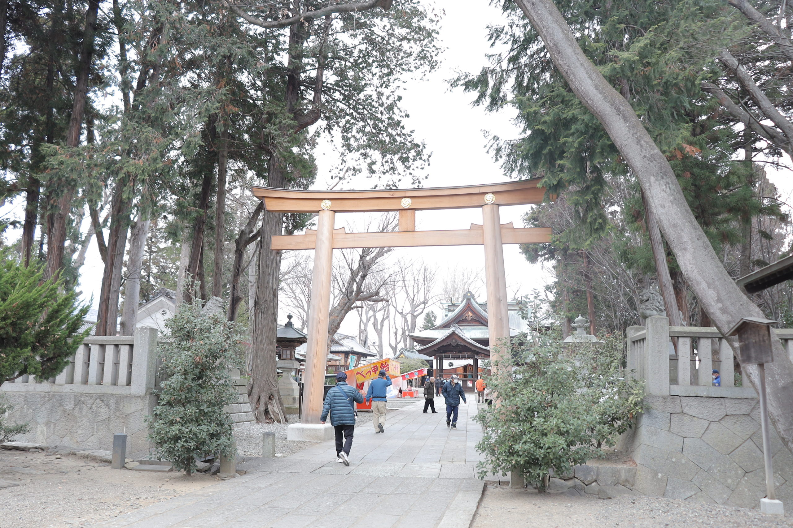 一行は大鳥居を潜って神社の境内へと足を踏み入れます。