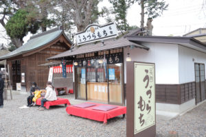 出店以外にも、境内には常にお茶屋「うづらや」があり、「うづらもち」は名物として人気があります。