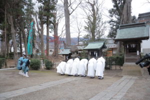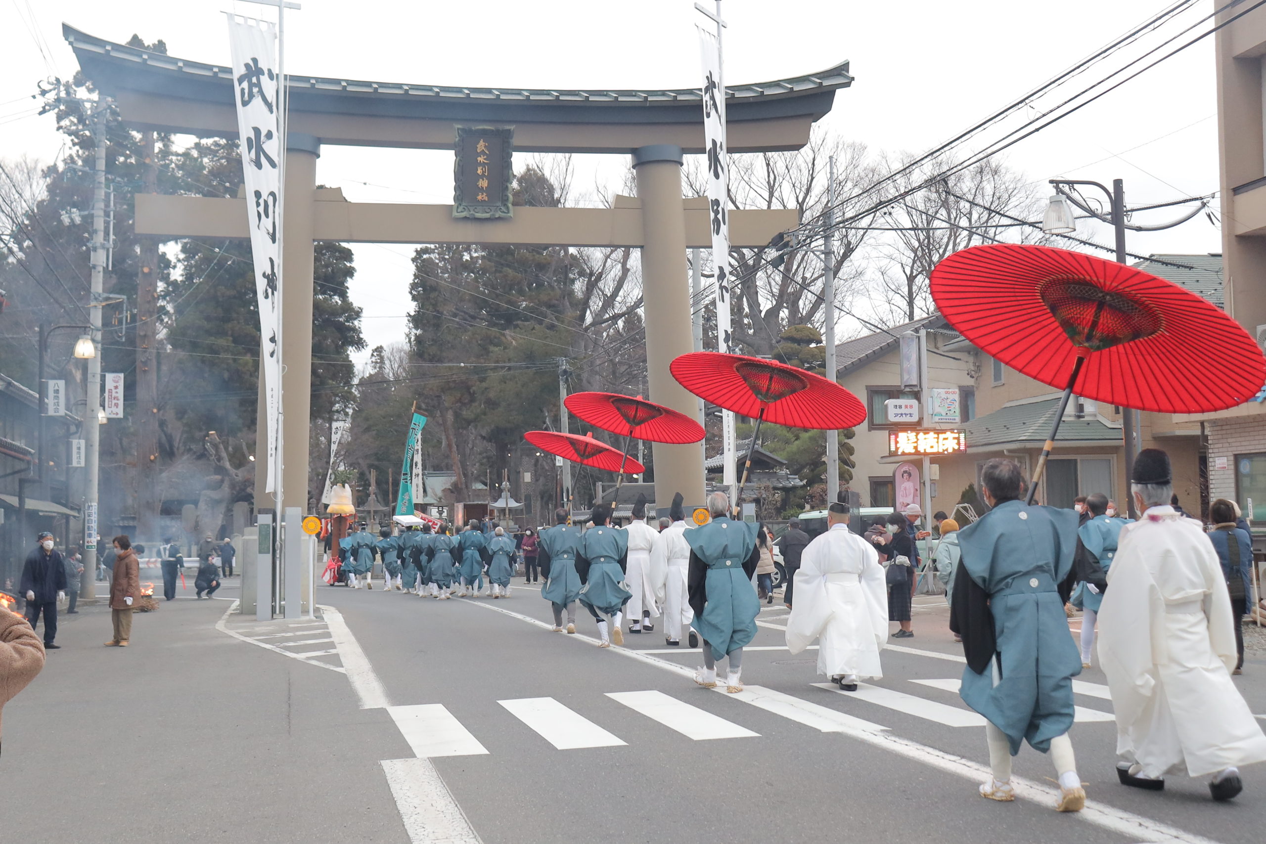 いよいよ武水別神社の手前まで来たところで、一行はストップします。