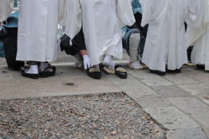草履から神域に入るための正式な靴へと履き替えるのでしょう。