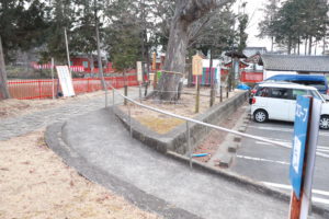 駐車場からスロープがのびているので、車椅子の方や足の悪い方でも安心です。