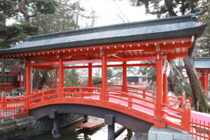ご本殿の前には立派な赤い橋が。