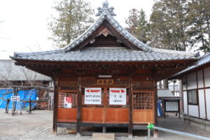鳥居をくぐって進むと、右手にお守り授与所、左手にご本殿があります。