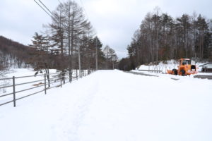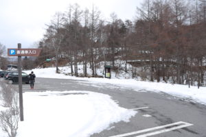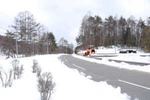 御射鹿池へ向かう道路は除雪が行き届いており、快適にアクセスできました。