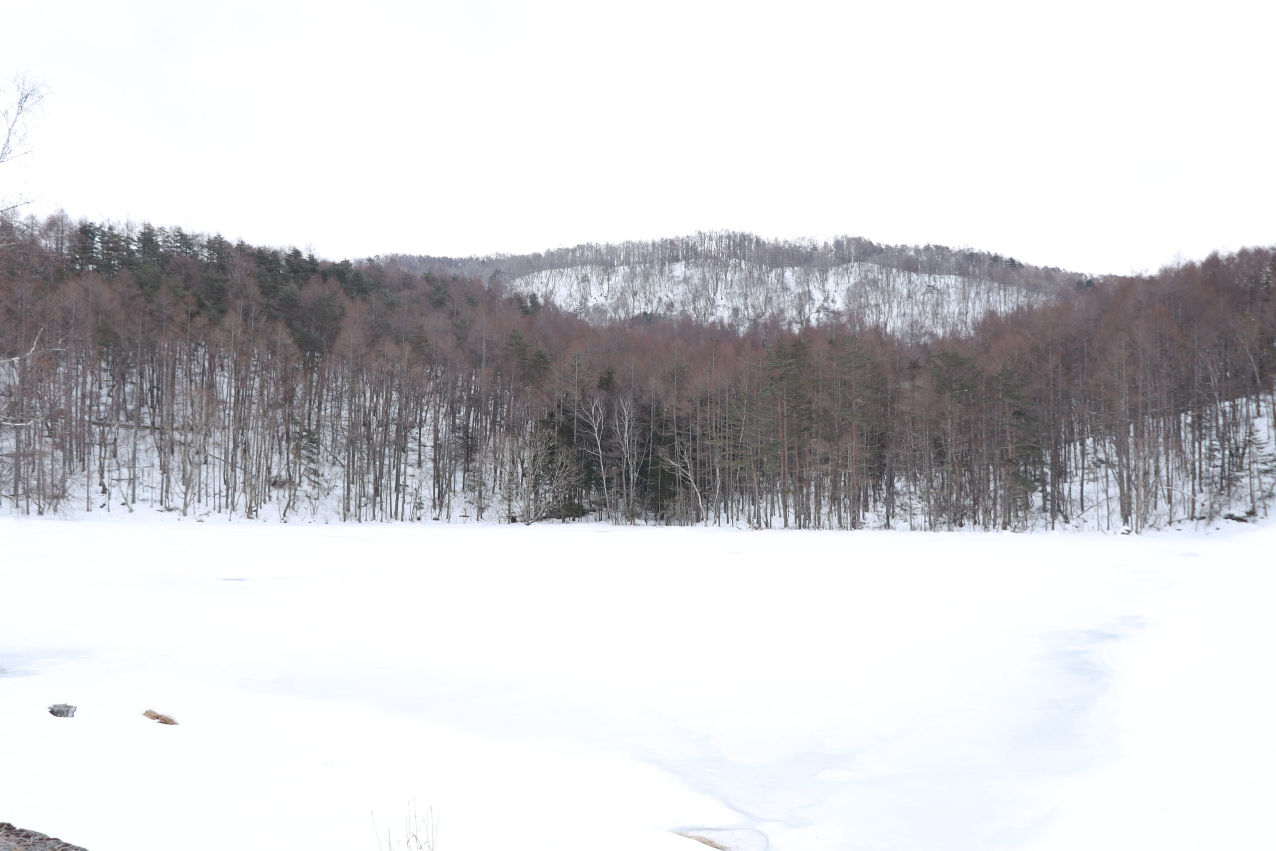 加えて、背景に雪が積もった木々を期待していたのですが、逆にこちらはすでに融けていてただただ茶色く、、