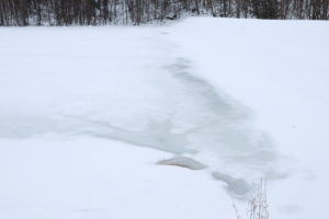 確かに雪が降った後だったのですが、池はすっかり凍っており、その上に雪が積もっていたため、水面すら見えず、、