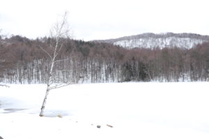 イメージでは、雪を被った木々が池の水面に映っている写真を撮りたかったのですが、