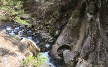 しかも、橋の下は滝から流れてきた勢いのある水がしぶきを上げて下流へと流れています。
