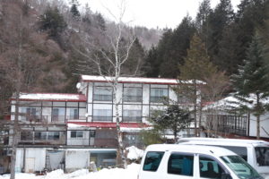 宿の右手前にお手洗いも。滝を見に来る観光客のためのお手洗いだと察知できます。