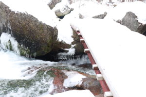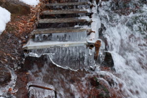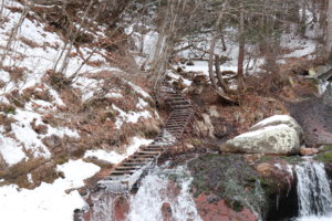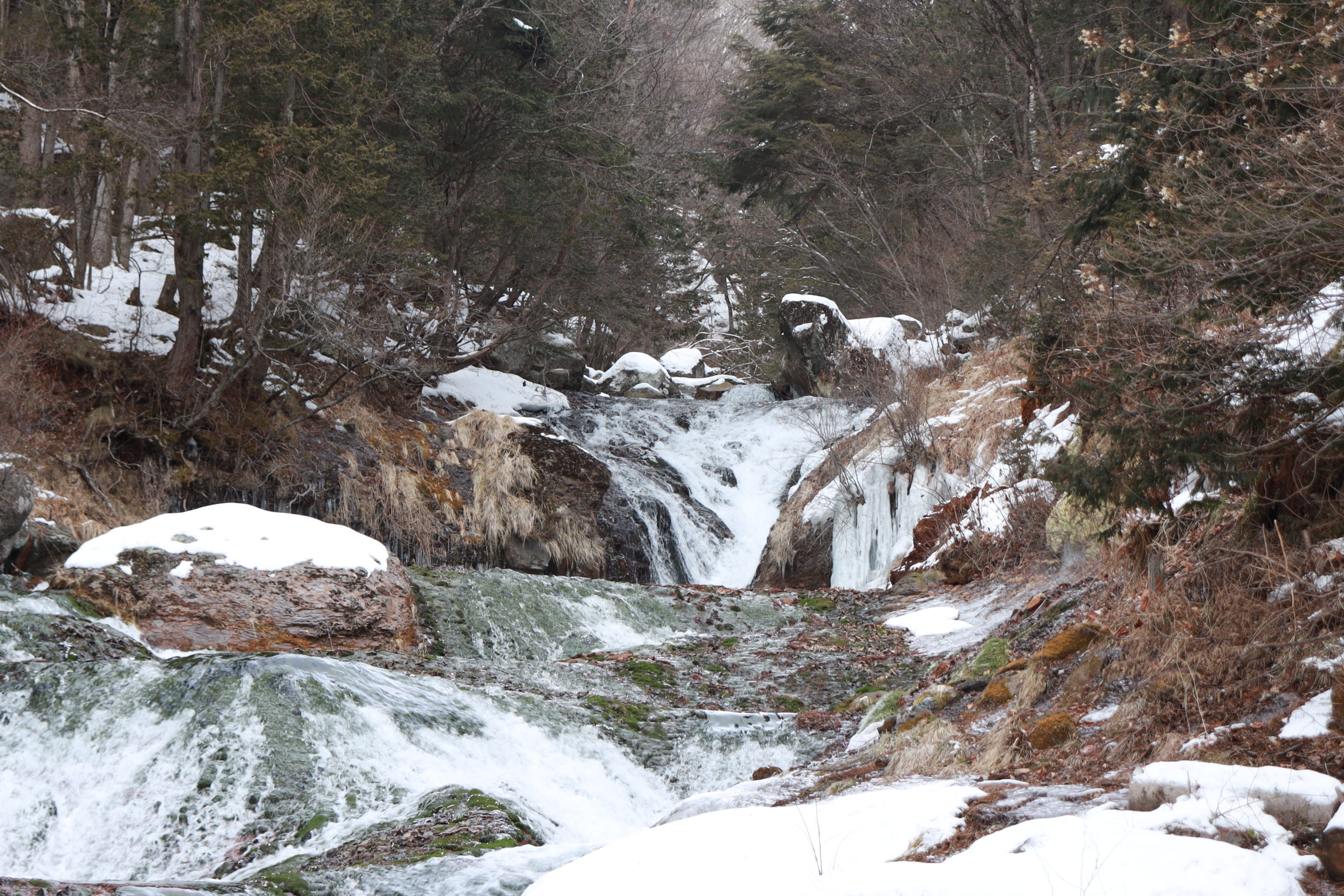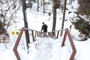 この階段もすっかり凍っており、階段を登って少し上からの滝の景色を撮ることもできたかもしれませんが、さすがにそこまでの冒険心はありませんでした(苦笑)。