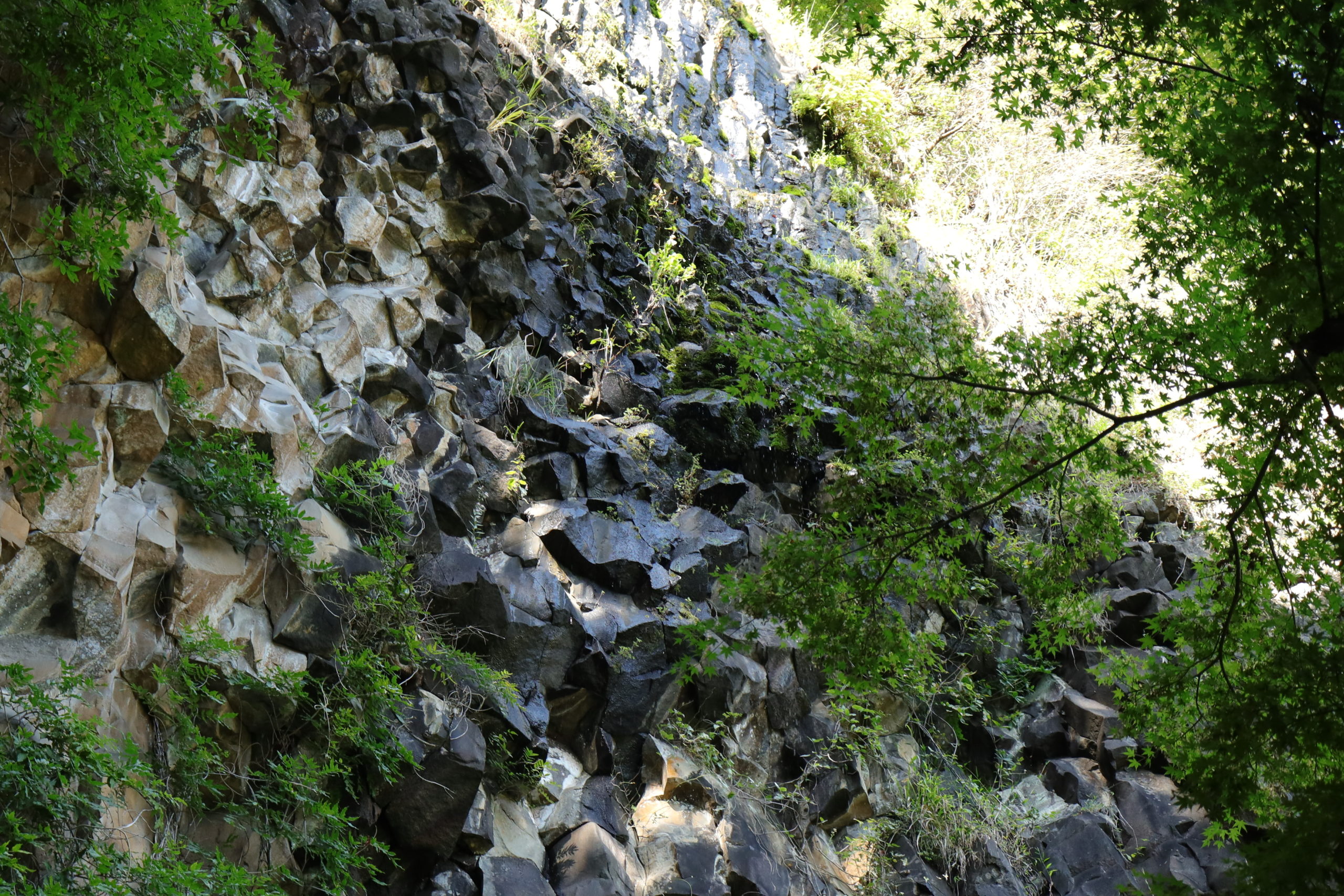 雨量が多い日が続くと崖の上より滝が出現します。