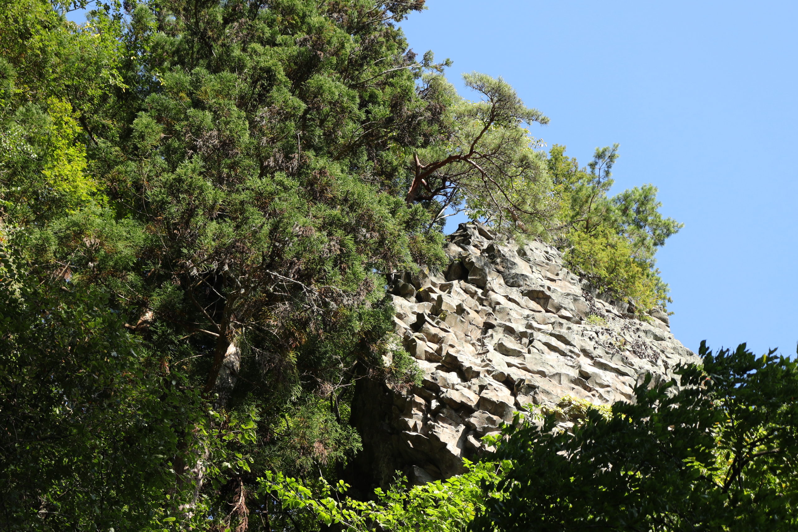 お堂の裏が柱状節理の断崖になっており、