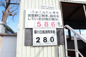 白鳥湖にも遊水池にも当日の白鳥の飛来数が書いてある看板があるのですが、そんなにいるかな?という感じでした。