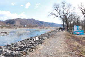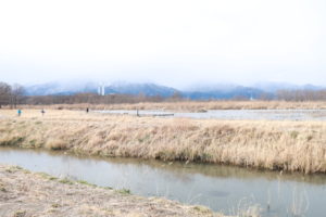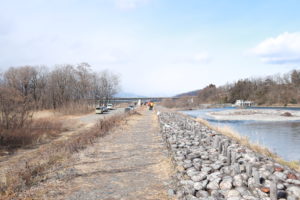 白鳥湖と同じように犀川沿いの河川敷に広い駐車場があり、適当に端から車を止めるようになっています。