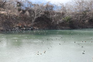 また、駐車場側に溜め池?湖?があり、もしかしてこれが白鳥湖?とも思いましたが、そちらには白鳥が1羽もおらずカモだけたくさんいました。