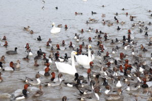 越冬のために滞在する白鳥および数種類の水鳥を見ることができます。