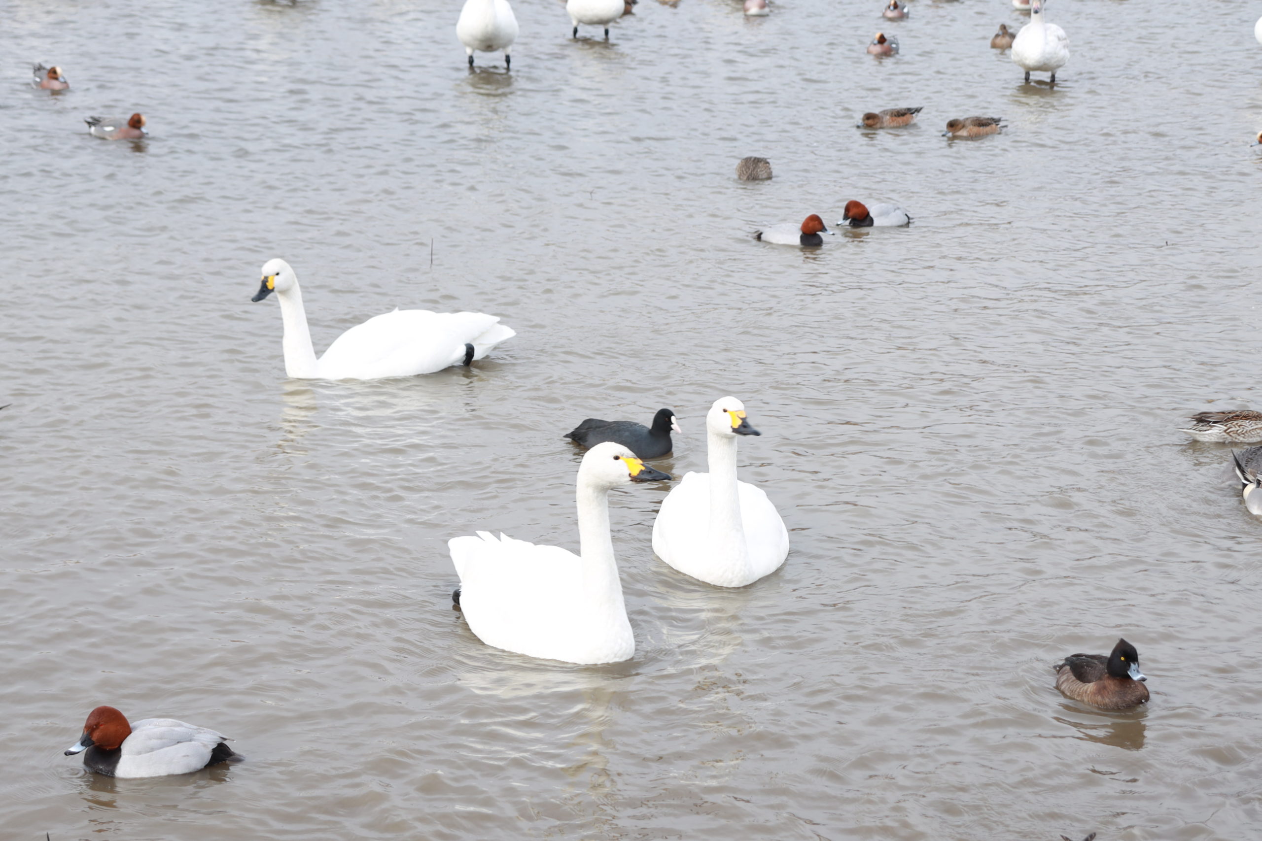 前評判では、白鳥湖の方が白鳥の飛来数が多いとのことでしたが、この日はどちらも同じくらいだったように思います。