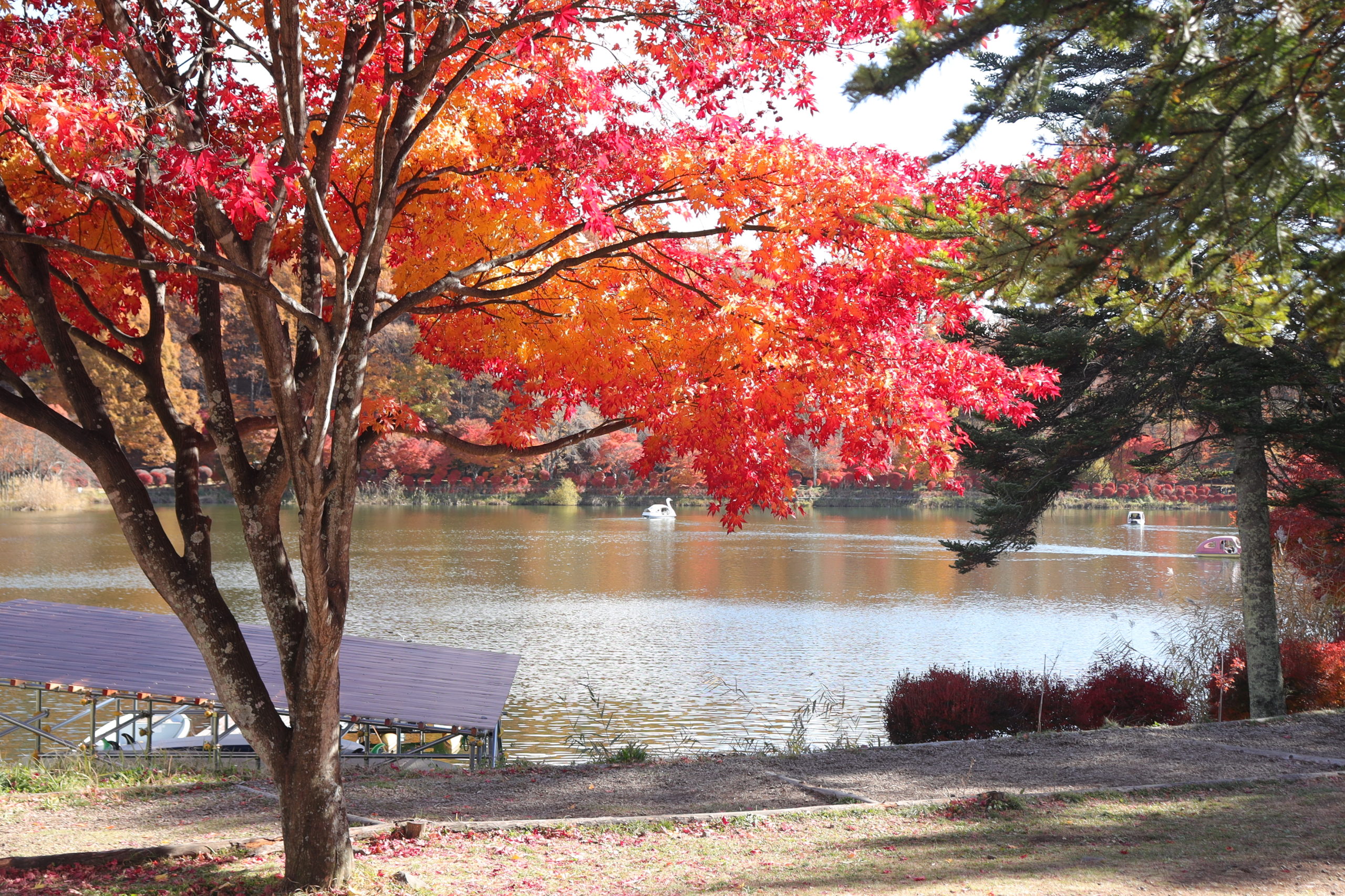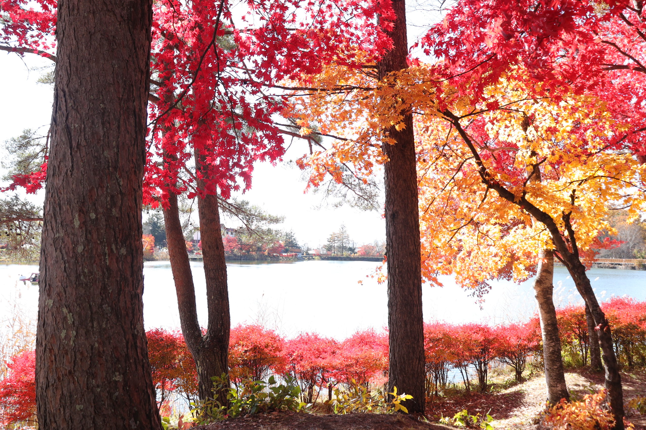 特に秋の紅葉は素晴らしく、湖畔全体が紅や黄に彩られた様は大変見事です。