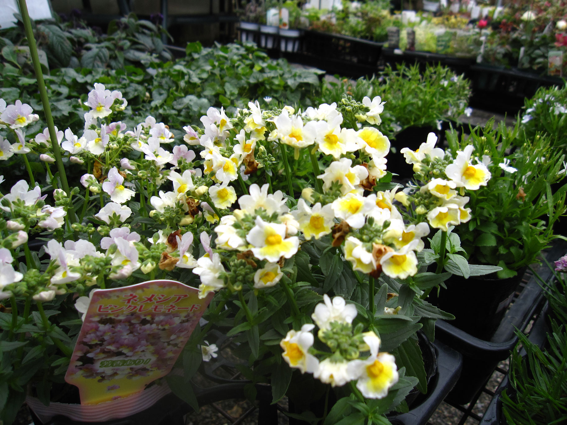 そんなお花たちを通り過ぎて建物に入ると、同じくガーデニング用の花々が並び、鉢やミニスコップなどのガーデニング用品が販売されていました。